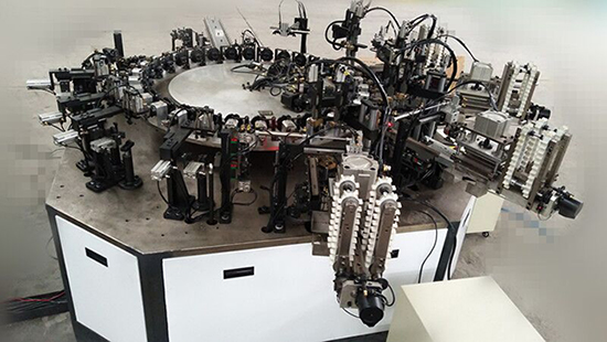 主機(jī)為三十工位間歇傳動(dòng)機(jī)構(gòu),產(chǎn)量為1000-1200支/小時(shí)左右。自動(dòng)上芯柱,自動(dòng)定位,自動(dòng)理絲、自動(dòng)切燈板,自動(dòng)上絲,焊接,檢測(cè),下料。